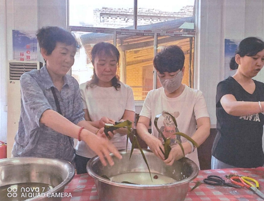 活動(dòng)現(xiàn)場,還特別邀請技術(shù)嫻熟的退休職工石愛愛、茹月連和職工家屬前來助陣,通過現(xiàn)場手把手教學(xué)的形式,將傳統(tǒng)手工制作技藝傳承給年輕人;現(xiàn)場學(xué)習(xí)的年輕人通過疊葉、加料、纏線反復(fù)練習(xí)制作,眼神中透露著那股不急不躁的慢;歡騰的現(xiàn)場還引來了男職工的助陣;大家在相互學(xué)習(xí)、相互交流的氣氛中,共話端午習(xí)俗,共慶端午佳節(jié)。